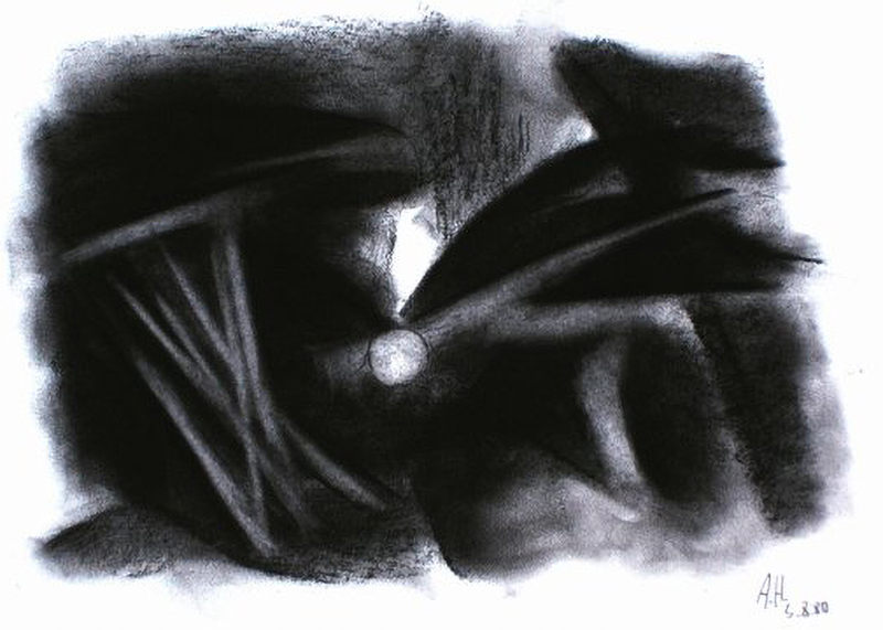 Nach dieser sehr figürlichen Zeichnung probierte ich die Kohlezeichnung zu abstrahieren. Dabei sind die nächsten zwei Kohlezeichnungen entstanden.