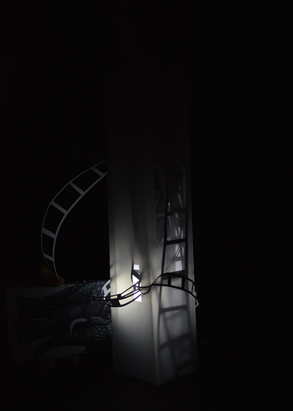 Ich erinnere mich gerne zurück an die Zeit, als wir noch keine Treppe hatten und mehrere Leitern die einzelnen Etagen verbanden. Ohne Treppe mit dem großem Loch entstand ein ganz neuer Raum. Unser ganzes Haus wirkte wie eine vertikales Loft, alle Zimmer waren zu einem großen Ganzen verbunden. Zu dieser Zeit war noch nicht viel Licht im Haus, aber mit dem neuen Freiraum im Zentrum schien das Licht wie ein langer Pfeil nach unter gebündelt zu strahlen, somit konnte man bis ganz hinauf blicken. Das Licht hatte im sonst dunklem Haus etwas Goldenes und Vielversprechendes, eine Andeutung an etwas Bevorstehendes. Es hat das mir noch unvertraute Haus Stück für Stück so beleuchtet und ausgeleuchtet, dass ich mich hinein getrauen konnte.