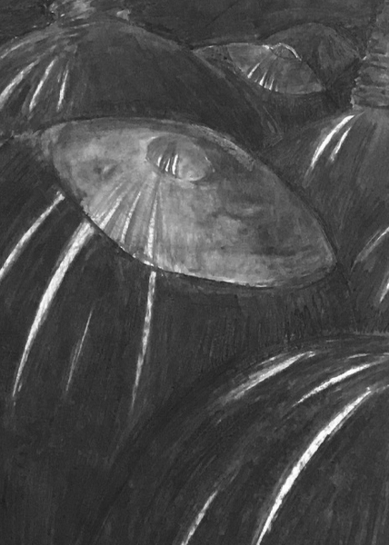 Der Raum bestand aus einem Hauptgang und zwei Nebengängen, welche durch massive Metallregale defi niert wurden. Die Regale waren vollgepackt mit hunderten von kleineren und grösseren Kartonkisten, beklebt mit unterschiedlichen, zum Teil kaum mehr lesbaren Etiketten und Zeichnungen von Schrauben, Knöpfen, Griffen, Scharnieren und Muttern. Ich kann mich nicht an Ecken des Raums erinnern. In meiner Erinnerung ist der Raum rund, wie eine Höhle in Stein gemeisselt und doch schwer. Der Boden war uneben und steinig, die Decke bestand aus den Holzdielen des oberen Geschosses. Durch die Decke rieselte immer wieder Staub, welcher, die auch wenn einmal vorhandenen Ecken, schön ausfüllte und abrundete. Gewisse Kisten wagte man gar nicht mehr anzufassen, da sie vor Feuchtigkeit und alter brüchig waren, was ich selbst erfahren durfte bei der Suche nach schönen Metallstücken für eine Perlenkette.
