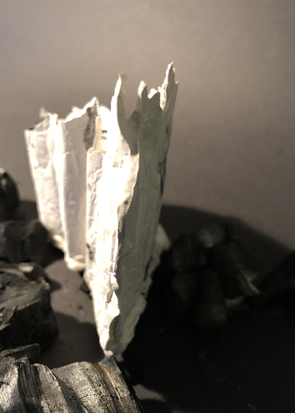 Mit zugekniffenen Augen spüre ich, wie langsam kalte Luft meine Gestalt umgibt. Es ist nicht der offizielle, grosse, luftige Estrich unter dem Dachgiebel mit den vielen Stützen, den hoch aufgestapelten Kisten, wertvollen und grossen Gegenständen – es ist ein Reststück des Dachstockes, fast leer geräumt bis auf ein Spielzeug und ein paar eingepackte, mit der Vorderseite zur Wand gestapelten Bilder. Die Dachschräge rechterhand verläuft vom Boden bis zur Decke dieses flurartigen langen nie zu enden wollenden Tunnels und scheint mich beinahe zu erdrücken. Diese Diagonale zwingt meinen Körper sich dem Raum anzupassen und verkrampft, halb geduckt und zur Seite geneigt betrete ich vorsichtig meine Schlucht – einen unheimlichen Schlund.